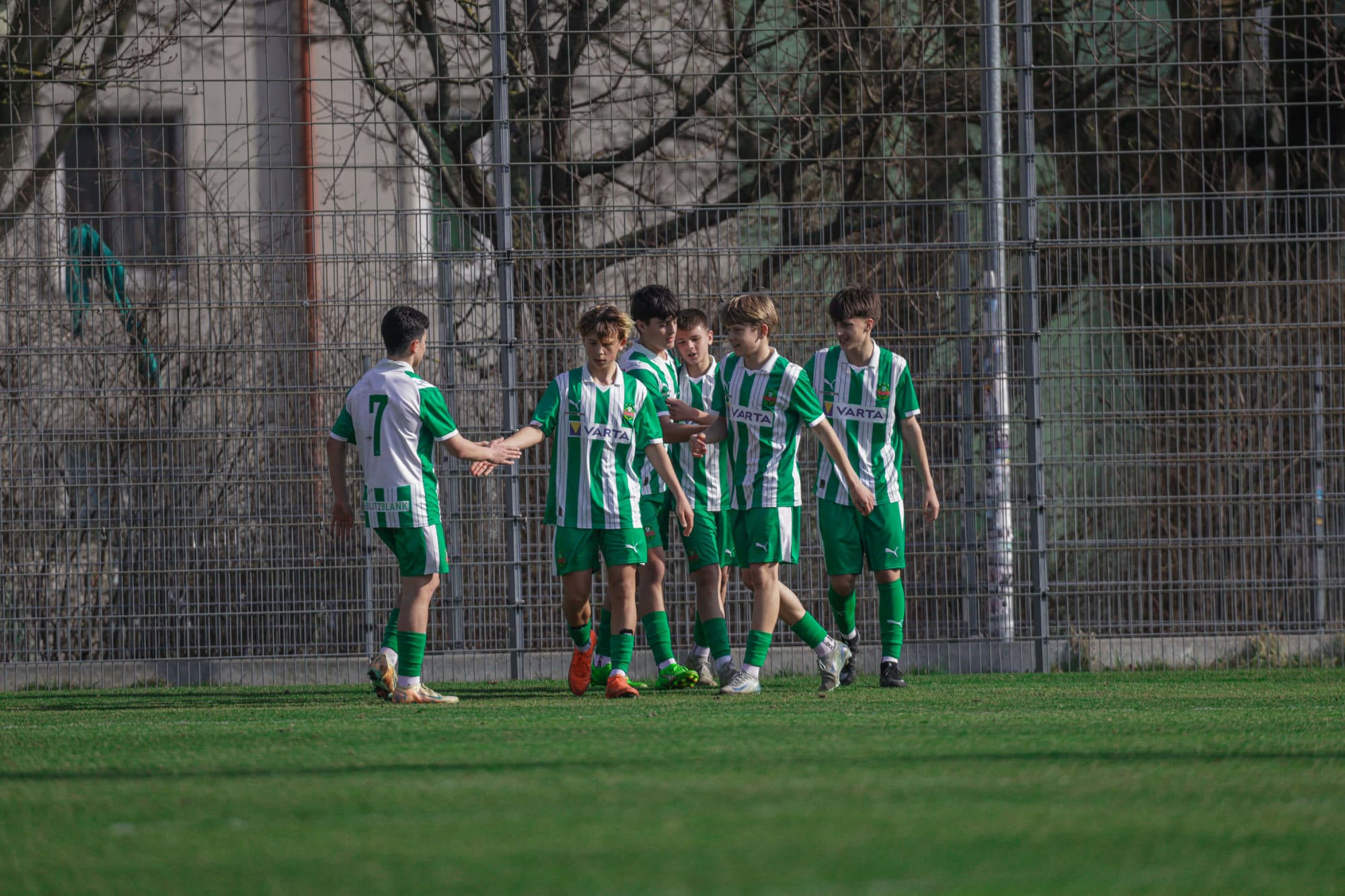 Die U16 erwischte einen idealen Start in die Partie und setzte die Gäste von Beginn an unter Druck. Bereits in der 3. Minute fiel das 1:0, als Florens Kuhn nach einem Eckball zur frühen Führung traf. Die Hausherren blieben auch danach tonangebend, ließen nicht nach und legten nur wenig später nach. Erneut war es Florens Kuhn, der in der 8. Minute auf 2:0 stellte. Die Burgenländer kamen in dieser Phase kaum zu zwingenden Aktionen, während das Team von David Gattinger das Spiel klar kontrollierte. Noch vor der Pause belohnten sich die Grün-Weißen ein drittes Mal, als Dariusz Dolhun in der 35. Minute zum verdienten 3:0-Pausenstand traf.