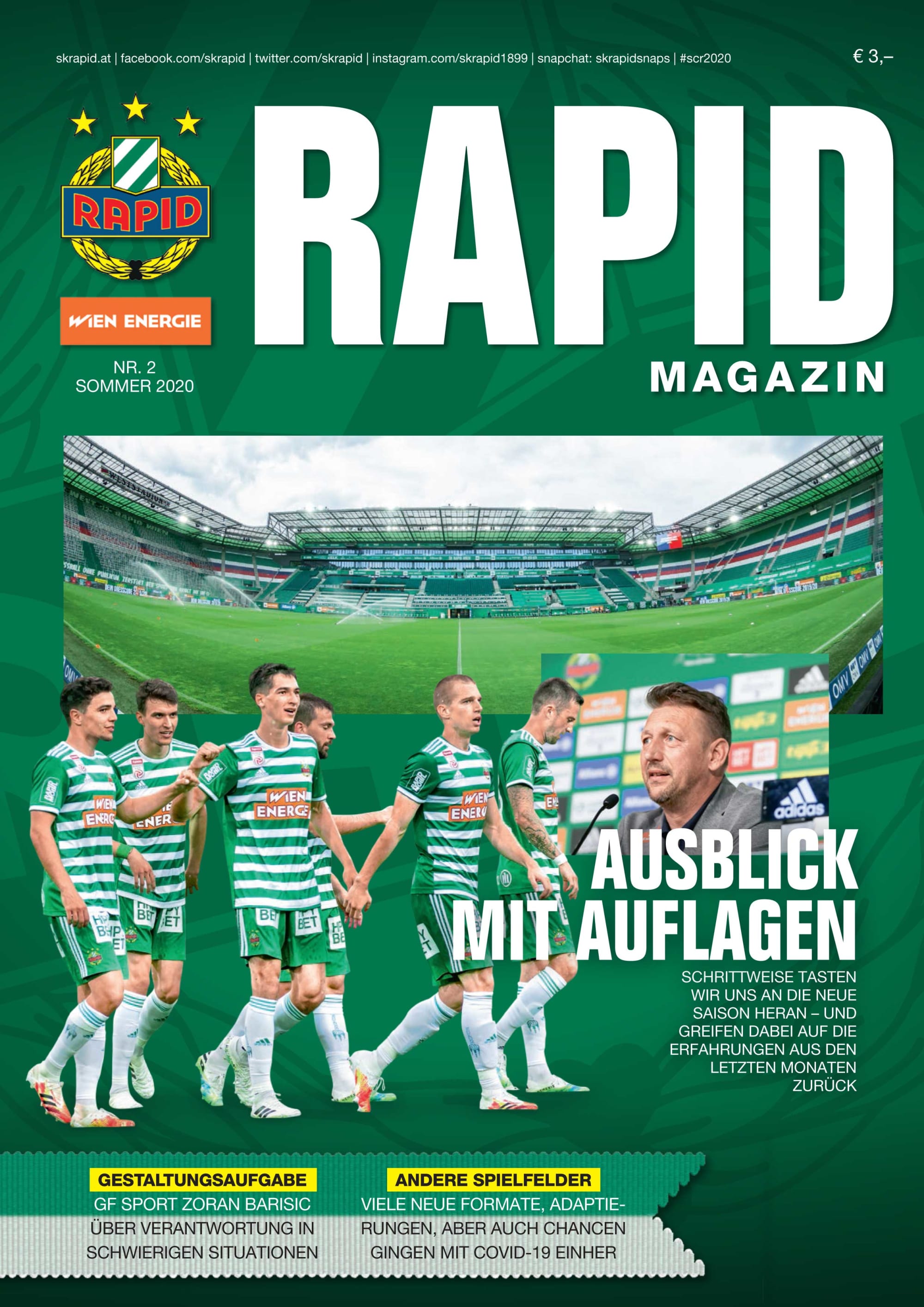 Als SK Rapid möchten wir in Zukunft das Thema der Nachhaltigkeit noch deutlicher intensivieren und im Rahmen unserer Möglichkeiten einen Teil zum Umweltschutz beitragen. Nach der bereits erfolgten Umstellung auf eine digitale Stadionzeitung wird nun im nächsten Schritt auch das Rapid Magazin ausschließlich nur mehr als E-Paper erscheinen. Mit dieser Maßnahme wollen wir auch der zunehmenden Inflation entgegenwirken. Das digitale Magazin führt zudem auch zu einer Prozessoptimierung, da dadurch sämtliche Themenbereiche noch aktueller gestalten werden können, nachdem die Vorlaufzeit ohne Druckauftrag und Versand deutlich verringert wird.